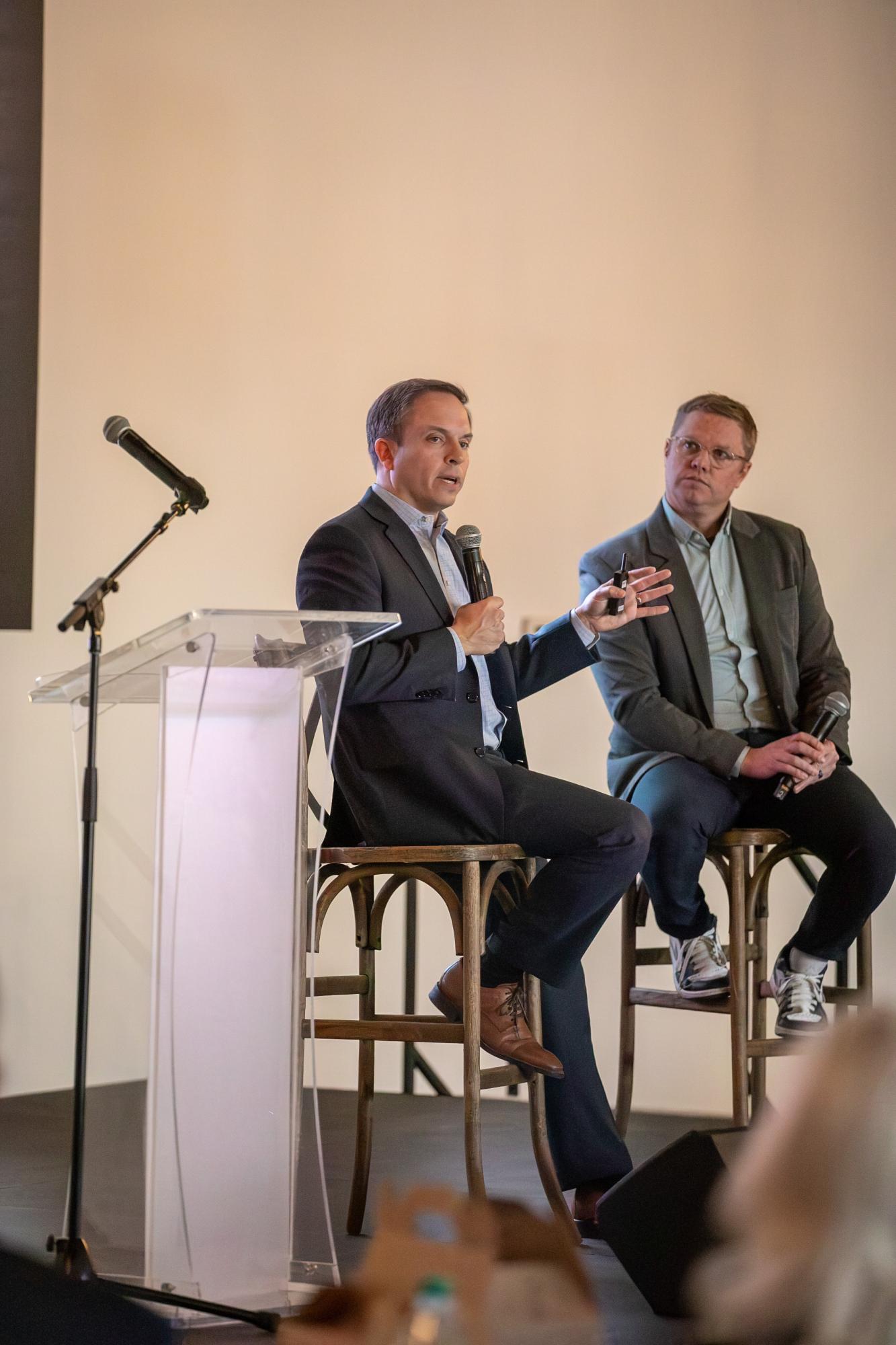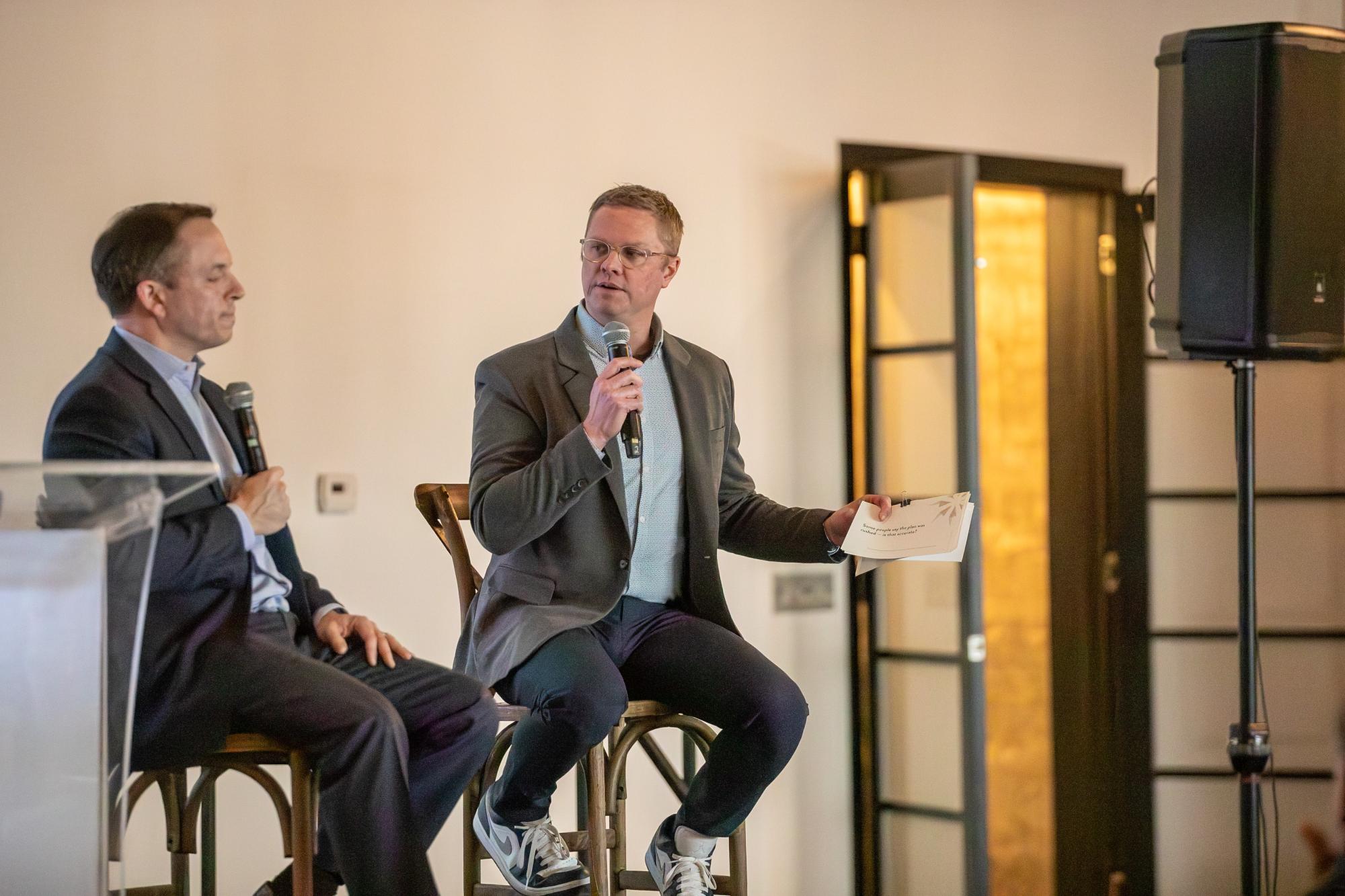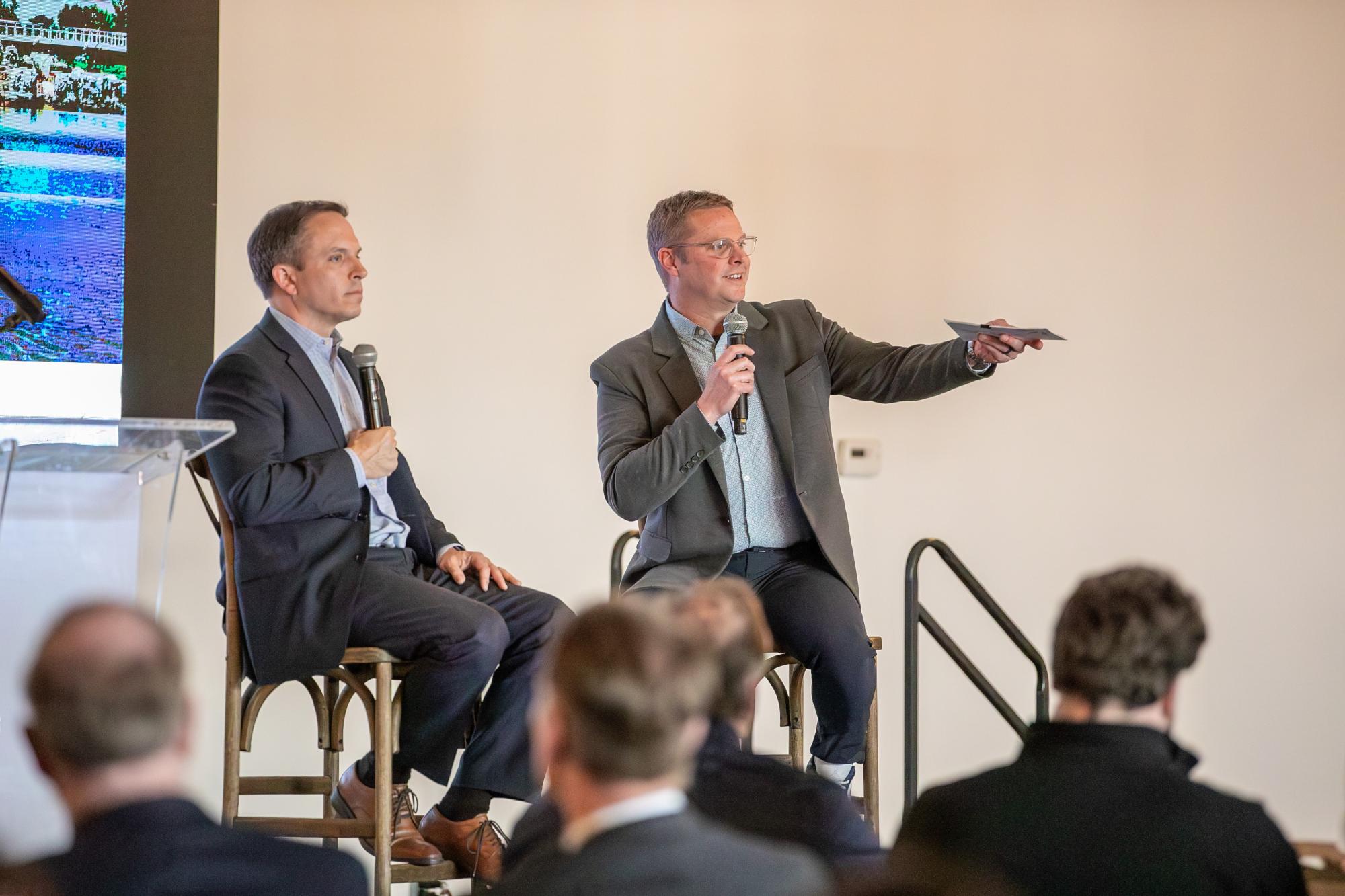 A panel discussion followed, featuring Wichita Forward representatives Aaron Bastian, President and CEO of Fidelity Bank, and Ben Hutton, CEO of Hutton.