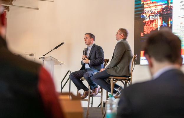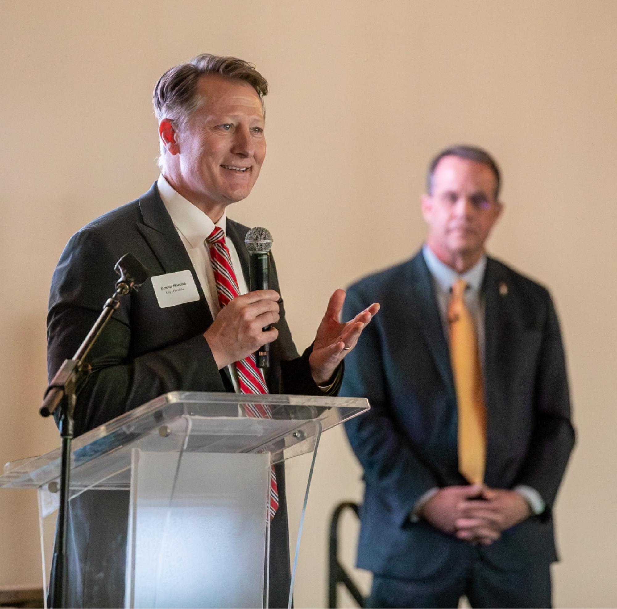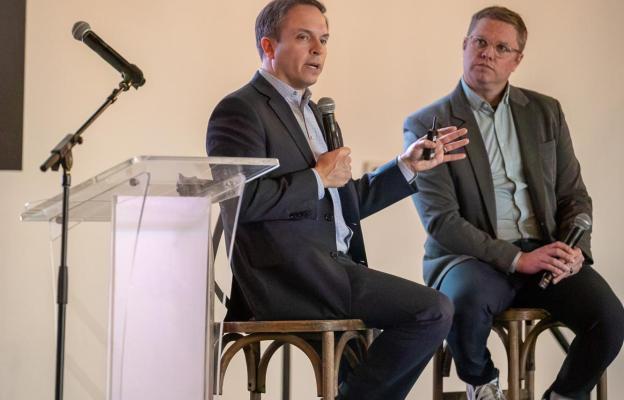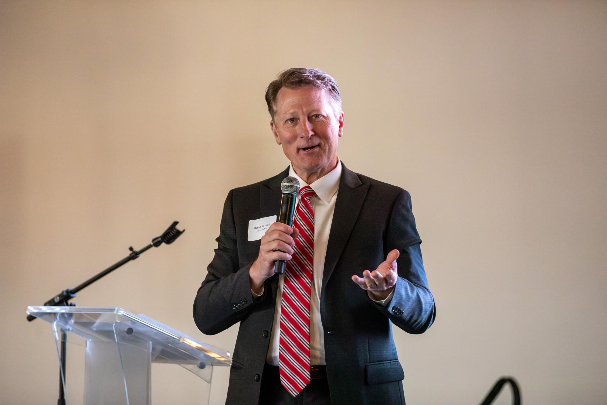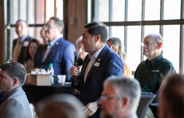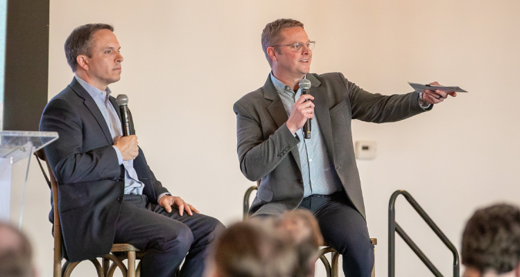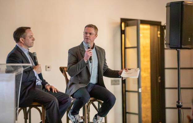 A panel discussion followed, featuring Wichita Forward representatives Aaron Bastian, President and CEO of Fidelity Bank, and Ben Hutton, CEO of Hutton.